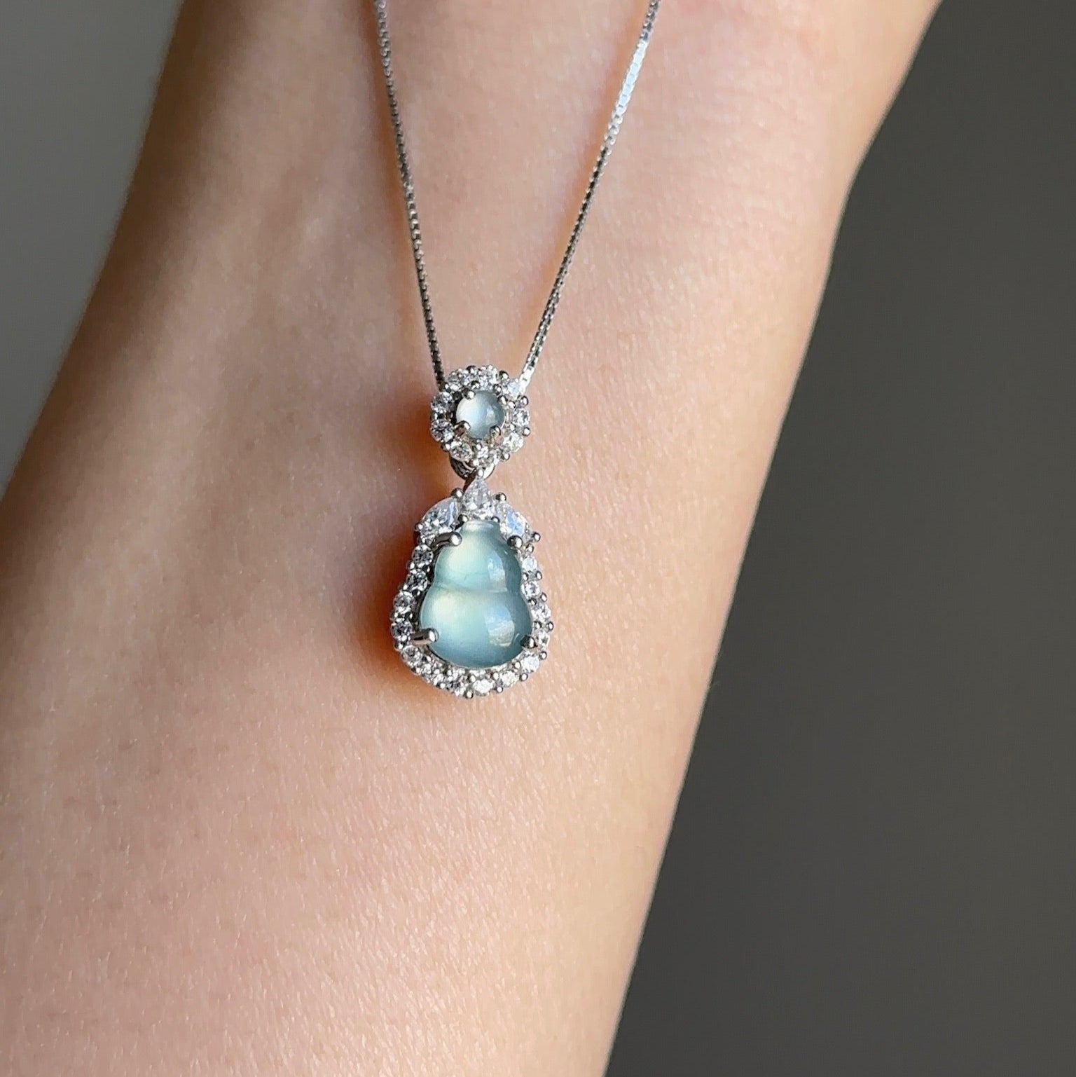 冰蓝透底葫芦翡翠项链 (Icy Blue Clarity Gourd Necklace)