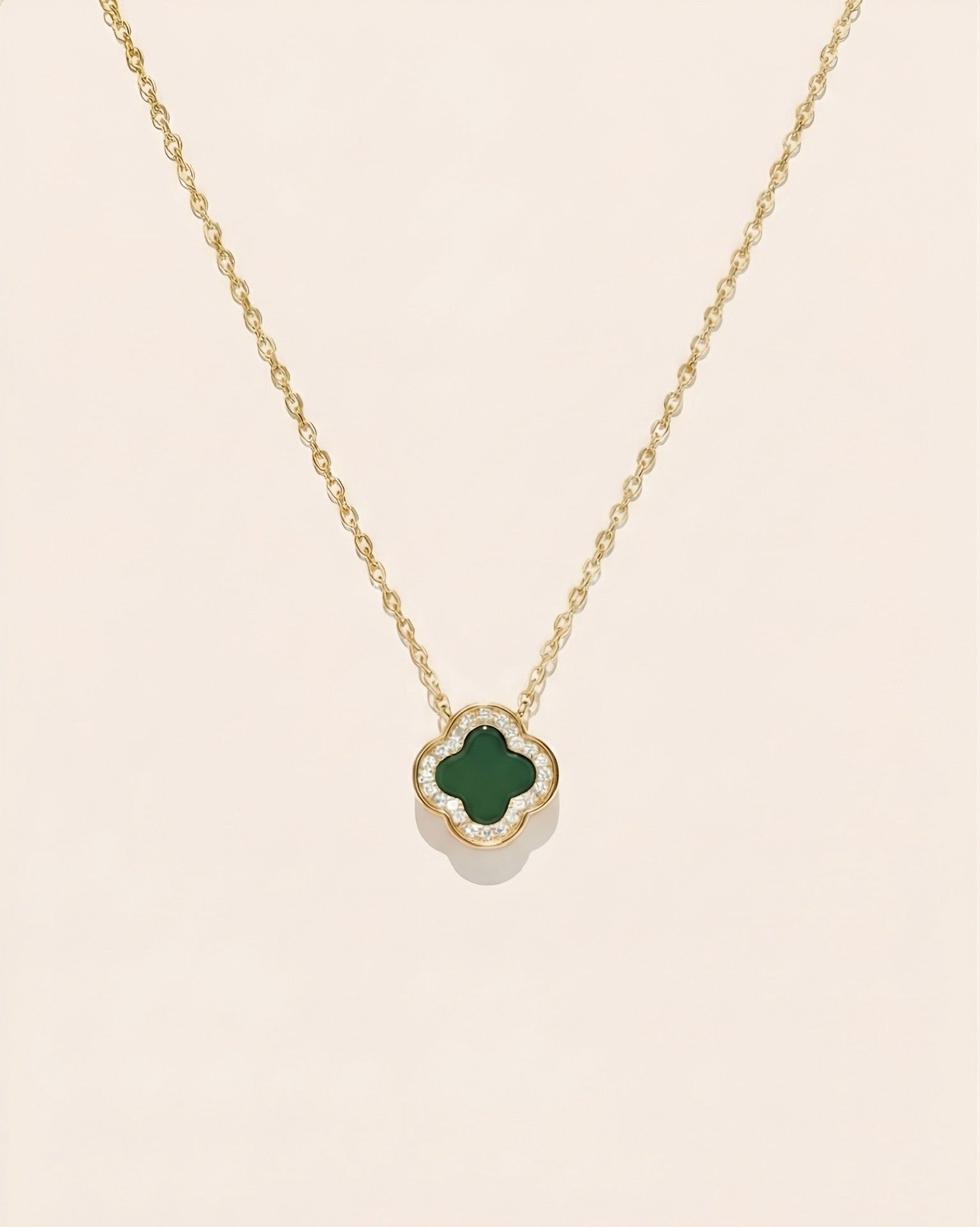 双面翡翠绿叶草项链 | Double-Sided Green Clover Necklace
