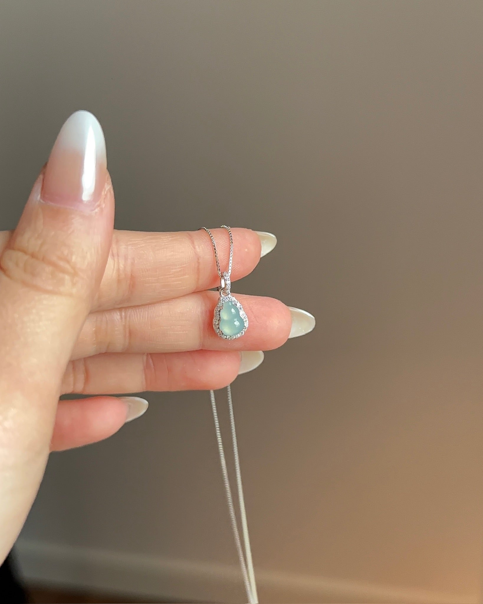 湖蓝小葫芦项链 (Minimal Blue Jade Gourd Neckalce)